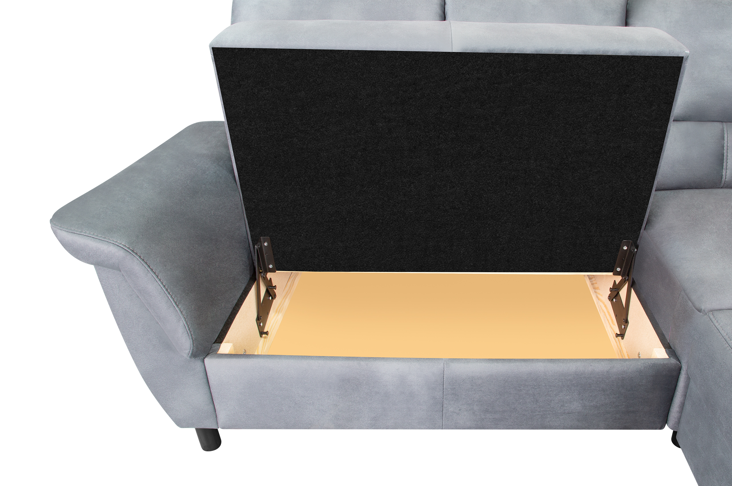 • Viel Stauraum: Unter der Ottomane verbirgt sich ein großer Bettkasten. Dank des praktischen Hebemechanismus (Springaufbeschlag) lässt er sich mühelos öffnen – der perfekte Platz für Decken und Kissen.